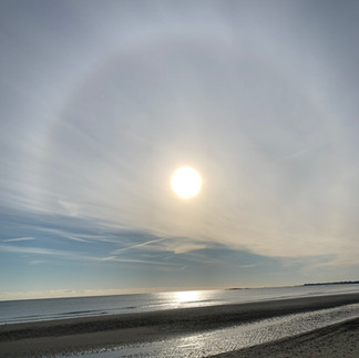 I flew home from Hawaii on February 19, 2022. After my host dropped me off at the airport she took a photograph of a magnificent sun halo over the kiteboarding beach near the home she hosted me on Oahu. For whatever reason she texted this photograph to me on March 4. The very next morning I had been planning to meet a friend who went through “invisible breast cancer” while I had an “invisible pregnancy” during covid. She lived over an hour away but had planned to wake very early and drive down to Scituate for the early morning low tide for a walk from Minot to Egypt Beach, a beautiful walk that only works around the low tide. Unfortunately the night before she wasn't feeling well so we decided in our new post covid world, we’d walk virtually. She near her home and me at the beach, and we’d chat on the phone. At the end of my walk as I hung up the phone I looked up and noticed my very first sun halo. This noticing changed my life. It became very apparent that for the past many many years I was so focused on doing that I had no time for being. I’m sure I’d been standing under many a beautiful sun halo but I just had not been present enough in the moment to notice. This is the essence of mindfulness meditation. We have to work to get out of our mind and into the present moment, with awareness and non-judgment.